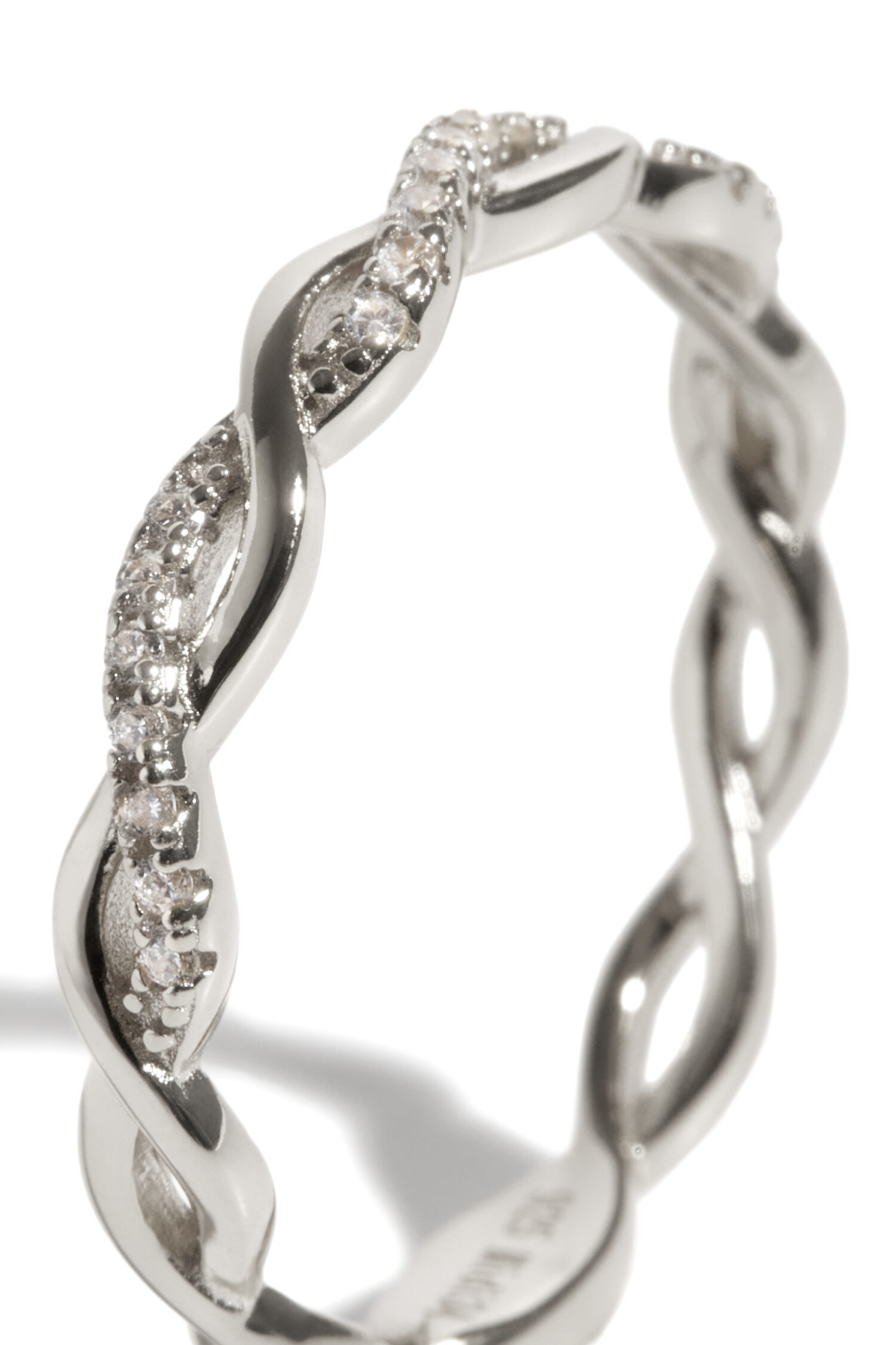 La bague pour femmes Brooke est un anneau au design entrelacé serti de fines pierres blanches scintillantes. Celle-ci est fabriquée en or vermeil, composée en argent sterling 925 et plaquée en or 14k jaune ou blanc.