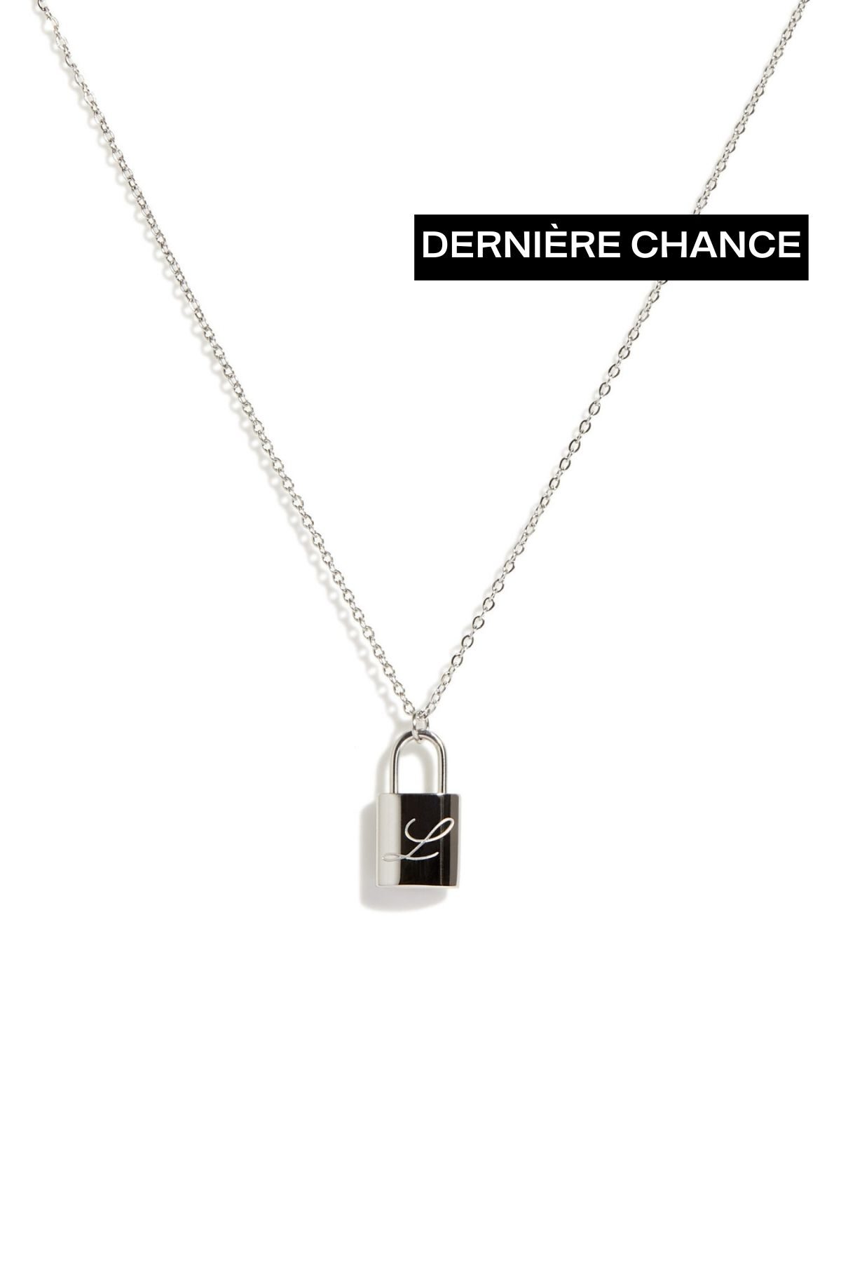 La chaîne pour femmes Forget me not est munie d’un pendentif en forme de cadenas sur lequel la lettre L est gravée. Vous pouvez porter la chaîne d’un côté comme de l’autre. Ce bijou est fabriqué en acier inoxydable 316L.